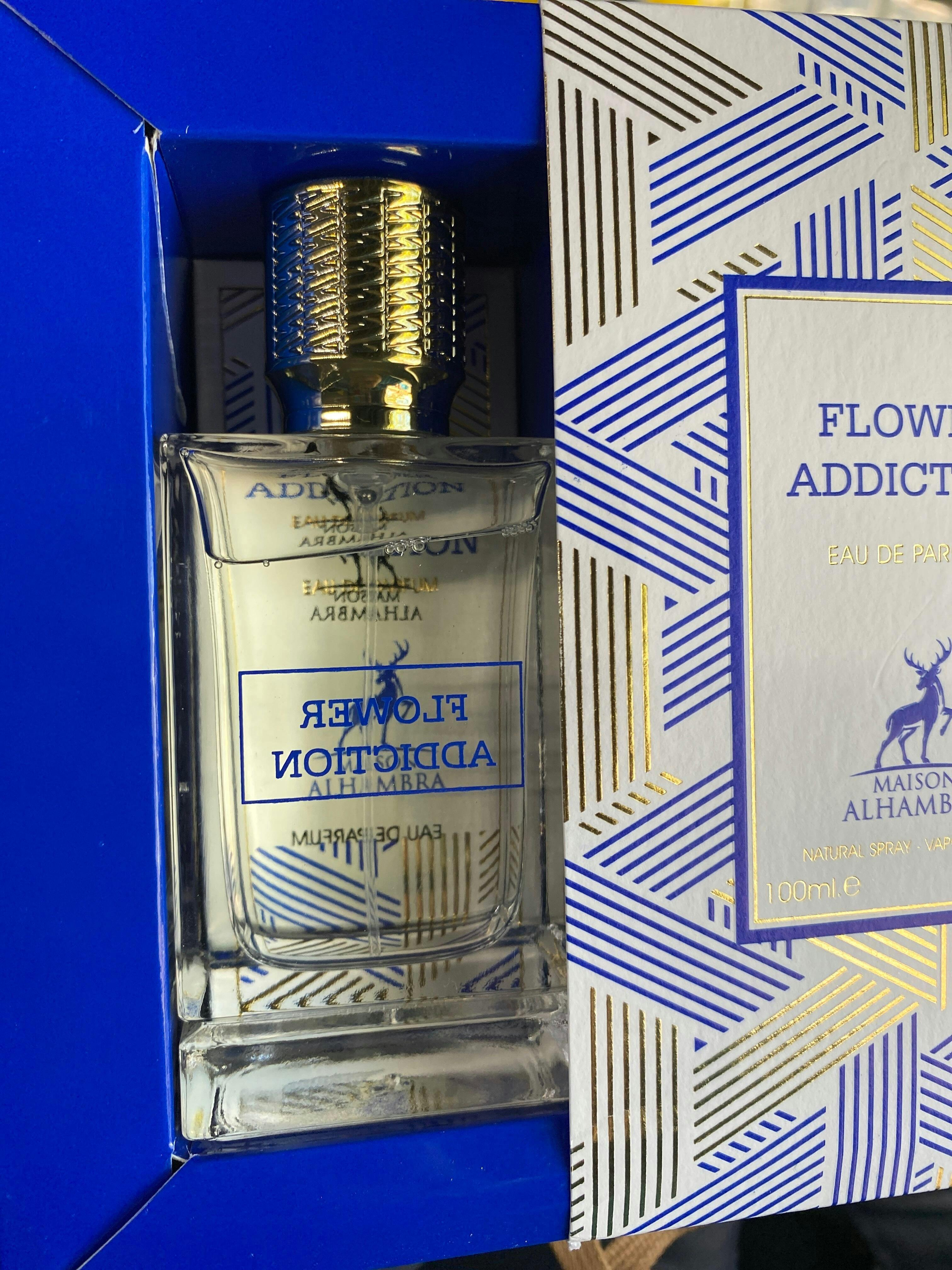 Flower Addiction de Maison Alhambra es una fragancia femenina que combina notas frutales y florales para crear un aroma fresco y encantador. Se abre con notas de lichi, bergamota y melocotón, que aportan una dulzura jugosa. El corazón está compuesto por peonía, flor de naranjo, jazmín y Petalia, ofreciendo un bouquet floral embriagador. La base incluye almizcle, musgo y notas amaderadas, proporcionando una profundidad sofisticada.
