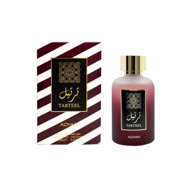 Adyan Tarteel es una fragancia unisex que envuelve con una mezcla armoniosa de notas dulces y amaderadas, creando un aura cálida y sofisticada. Perfecta para usarse tanto de día como de noche, su versatilidad la hace adecuada para todas las temporadas. Esta fragancia proviene de la reconocida casa árabe Adyan, especializada en perfumería de lujo con inspiración oriental.