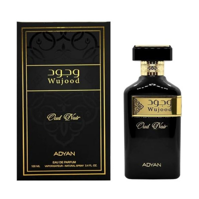 Wujood Oud Noir de Adyan es una fragancia intensa y sofisticada que destaca por sus notas profundas de oud combinadas con un fondo especiado y amaderado, creando un aroma potente y elegante. Perfecta para la noche y temporadas frías, su formulación en extrait de parfum asegura una proyección duradera. Esta fragancia pertenece a la casa árabe Adyan, conocida por su excelencia en perfumería oriental de alta gama.