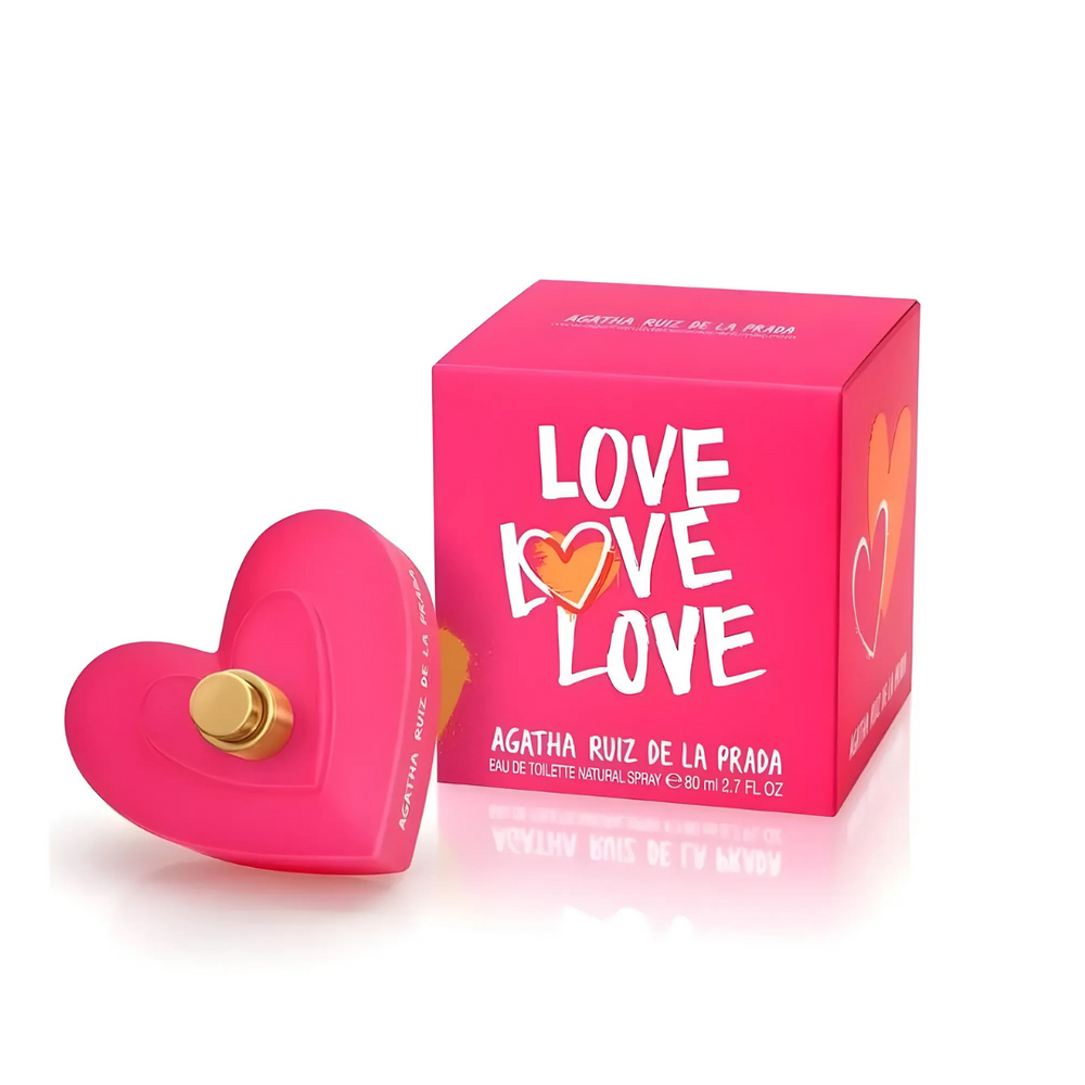 Love Love Love de Agatha Ruiz de la Prada es una fragancia femenina juvenil y romántica con un perfil floral y frutal. Destacan notas de frambuesa, pera, jazmín y sándalo. Ideal para uso diario en primavera y verano. Creada por la casa española Agatha Ruiz de la Prada, refleja alegría, color y un espíritu optimista.