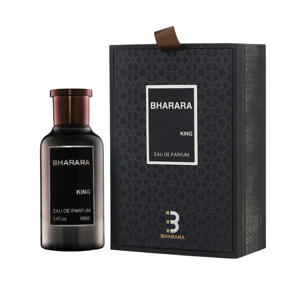 Bharara King EDP 100 ml inicia con una chispa cítrica de naranja, limón y bergamota, evoluciona hacia un corazón frutal penetrante y culmina en una base cálida de vainilla, ámbar y almizcle blanco. Inspirado en Erba Pura de Xerjoff