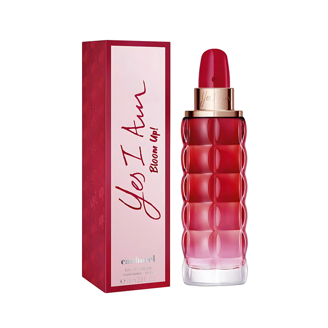 "Yes I Am Bloom Up" de Cacharel es una fragancia femenina de la familia olfativa Floral Frutal, lanzada en 2023. Esta composición se abre con notas de salida de frutos rojos y mandarina verde; continúa con un corazón de peonía y flor de azahar del naranjo; y culmina en un fondo de benjuí y sándalo. Es una esencia que combina frescura y vitalidad, ideal para mujeres que buscan un aroma energético y moderno.
