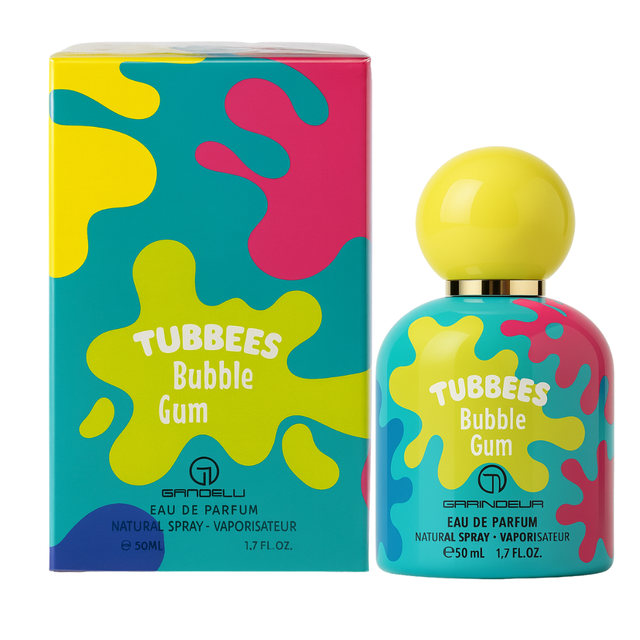 Grandeur Tubbees Bubble Gum EDP 50 ml es un homenaje divertido al chicle rosa: primero frutas y clavo, seguido por un corazón de auténtico bubble gum y naranja, y termina en una base de vainilla cremosa, cashmeran y pachulí.