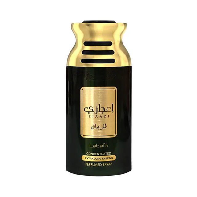 Lattafa Ejaazi es un desodorante con una fragancia oriental y especiada que mezcla notas cítricas, amaderadas y ambarinas, creando un aroma masculino elegante y duradero. Ideal para el uso diario o para ocasiones especiales durante las temporadas frescas. Esta fragancia proviene de la casa árabe Lattafa, reconocida por sus composiciones intensas y sofisticadas.