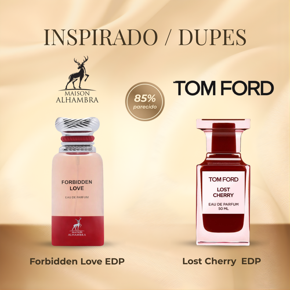 Maison Alhambra Forbidden Love EDP 30 ml es una fragancia seductora y envolvente que combina notas dulces y florales con un fondo cálido y adictivo. Inspirado en Lost Cherry de Tom Ford. Creada para mujeres que buscan un aroma intenso, elegante y provocador para destacar en ocasiones especiales.