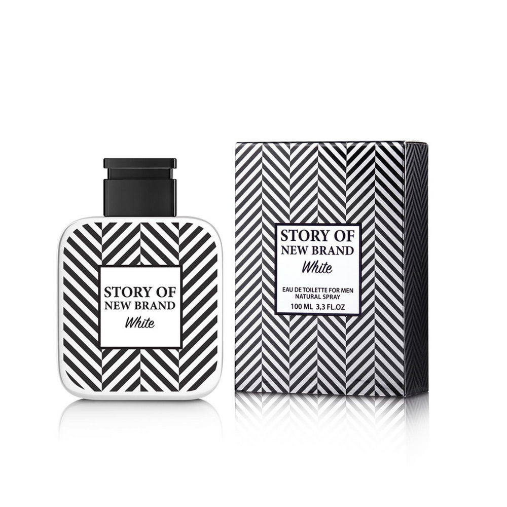 Story of New Brand White es una fragancia masculina lanzada en 2020, perteneciente a la familia olfativa Aromática Acuática. Se abre con notas cítricas y pimienta rosa; en el corazón se encuentran notas acuáticas; y en el fondo, almizcle y notas amaderadas. Esta composición ofrece un aroma fresco y acuático, ideal para uso diurno durante la primavera y el verano. Producida por la casa belga New Brand Parfums, esta fragancia no pertenece a la categoría de perfumes árabes.